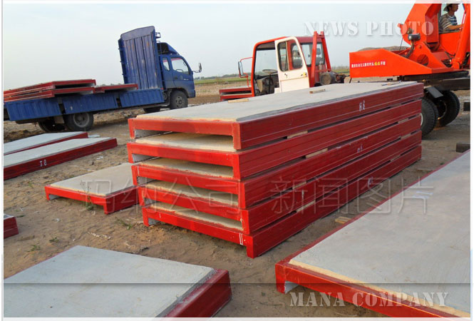 钢模生产屋面板时采用蒸汽养护。模板采用由专业生产厂家制作的钢模板。如自行加工钢模板,应进行设计,保证模板具有足够的刚度;侧板应开、合方便灵活。